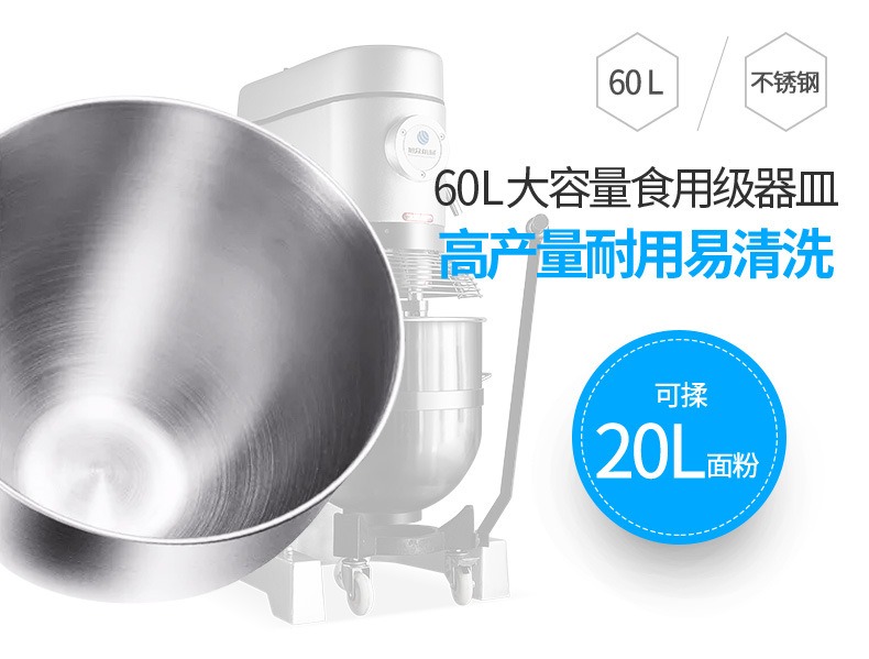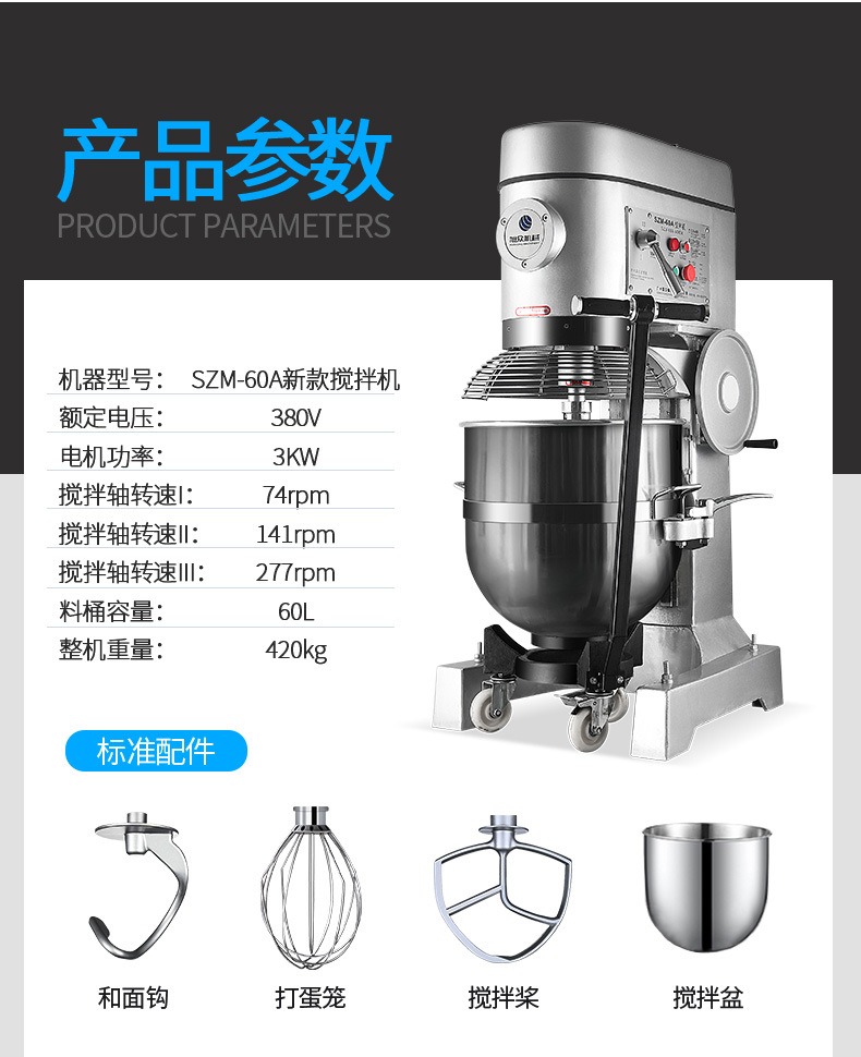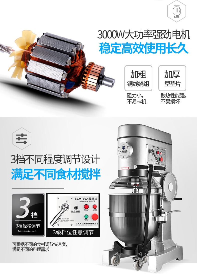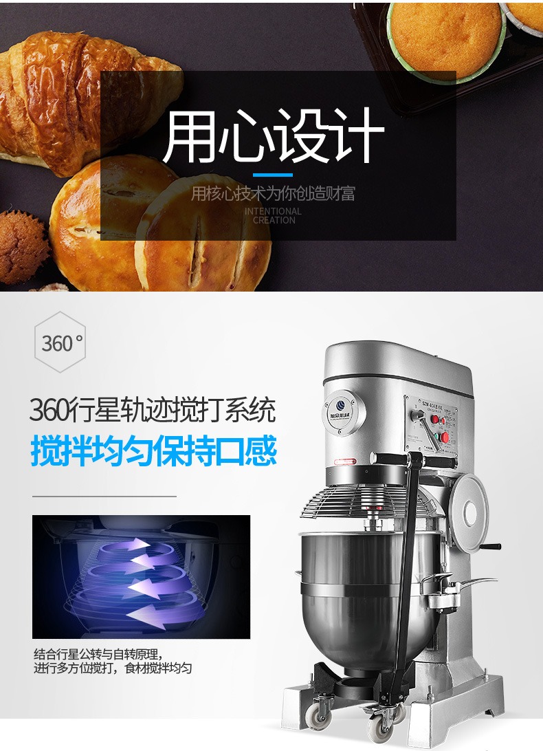 多(duō)功能(néng)攪拌和麵機(jī),創(chuàng)業神(shén)器,開創廚房新時代。多功能高效率,讓您省心省力又(yòu)省事。360行星軌跡攪打係統,攪拌均勻保持口感。3000W大功率強勁電機,穩(wěn)定高效使用長久。