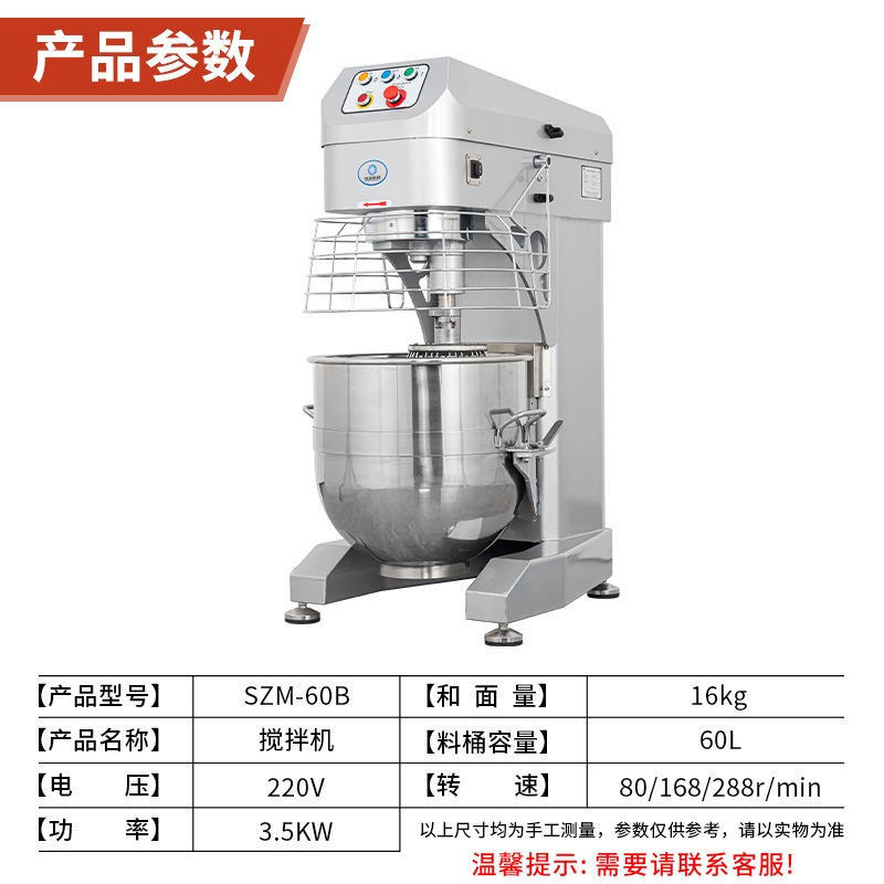名稱(chēng)多功能攪拌和麵機 電源(yuán)220/380V 功率(lǜ)1.1/1.5/4 產(chǎn)量需要(yào)請聯係客服 尺寸各型號不同,需要請聯係客服 重量110/150/480 規格20L/30L/80L 其他